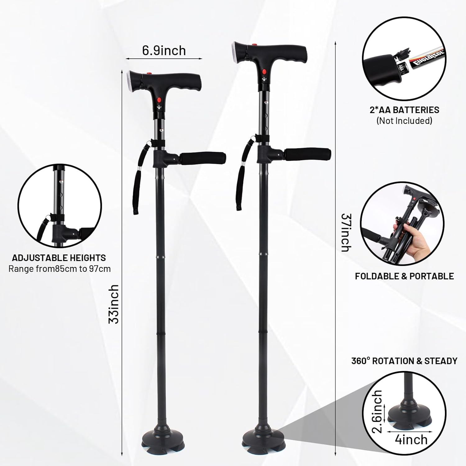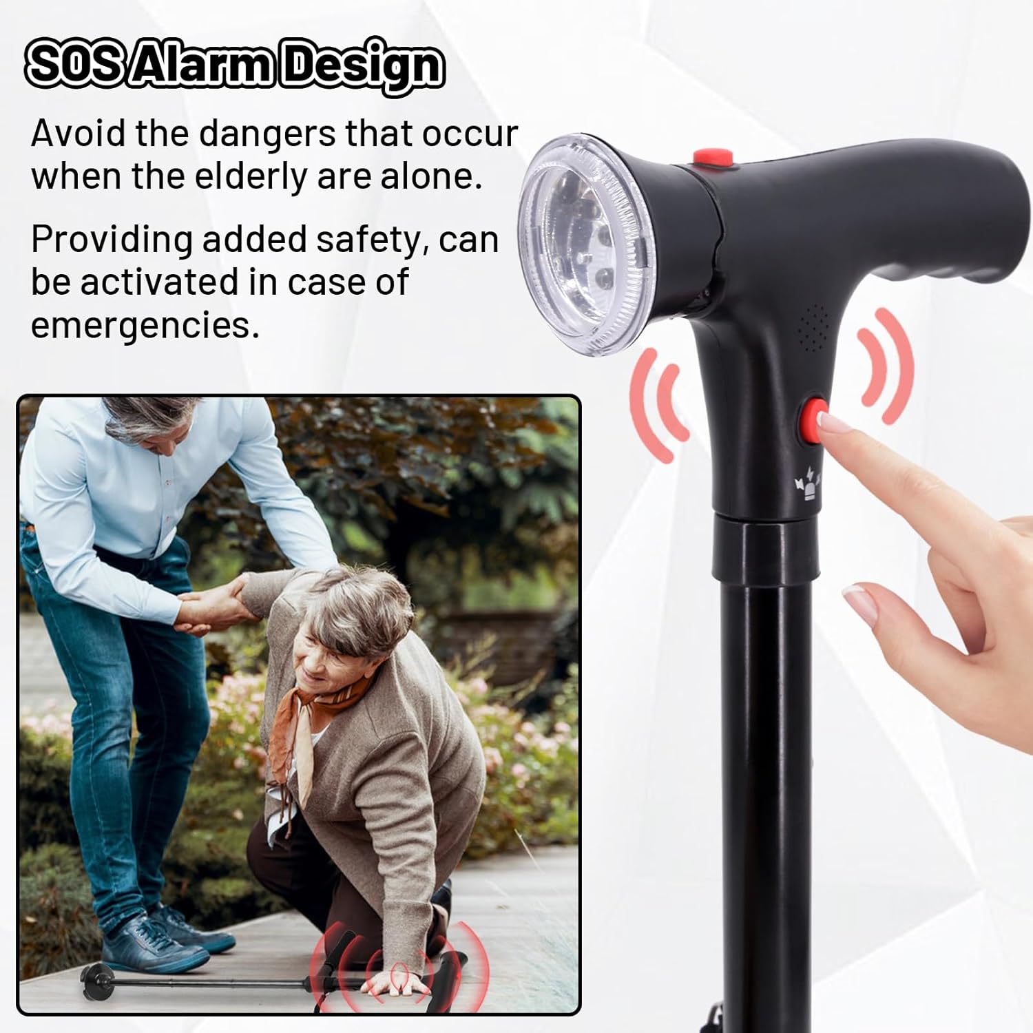 Bâton de Marche Réglable pour Seniors avec Alarme SOS Lumière LED