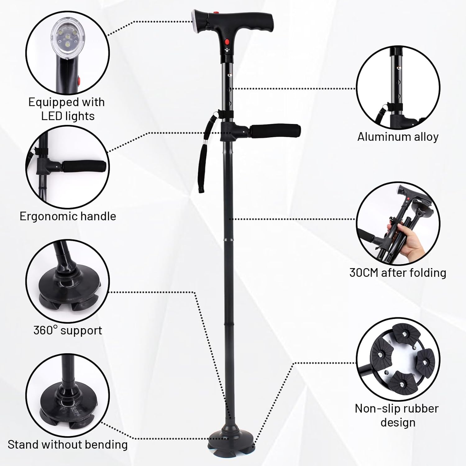Découvrez la canne de marche pliable multifonction, spécialement conçue pour les hommes et les femmes seniors recherchant confort, sécurité et autonomie. Équipée d’une alarme SOS intégrée et d’une lumière LED directionnelle, cette canne est idéale pour un usage quotidien à la maison comme à l’extérieur.