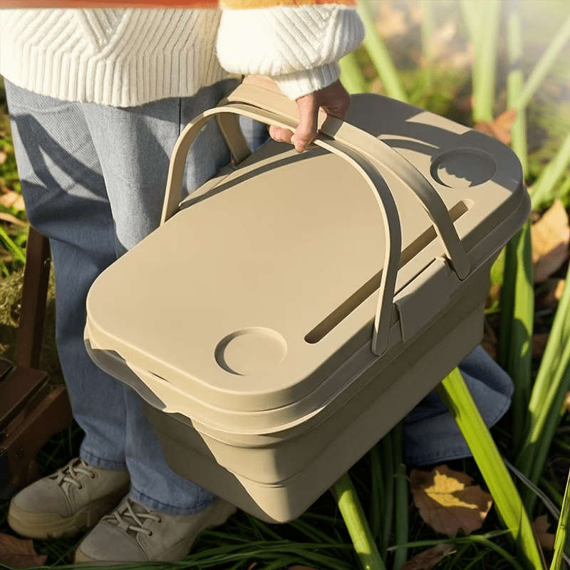 Pratique et ingénieuse, cette boîte de rangement pliable se transforme en table portable idéale pour le pique-nique, le camping, les sorties en plein air ou même à la maison. Sa conception pliable permet de l’utiliser comme panier de transport avec poignée, ou comme table pliante avec pieds métalliques stables.