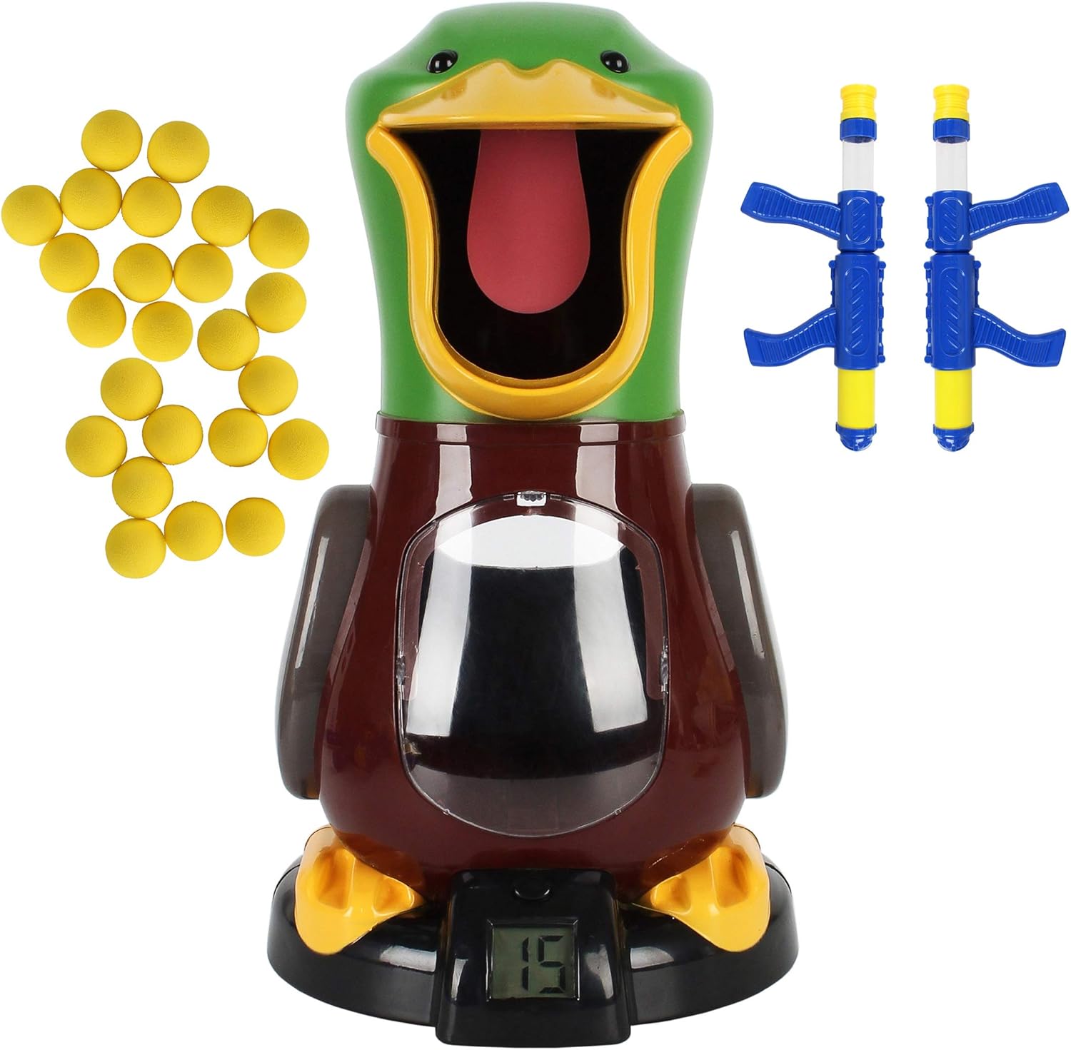 - Design original : Cible en forme de canard avec capteur électronique réactif – le canard crie et s’allume lorsqu’il est touché !
