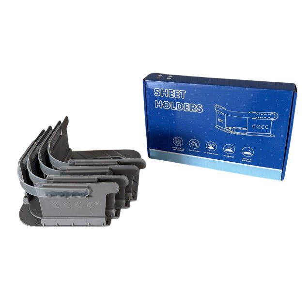 Gardez vos draps toujours bien tendus et en place grâce à ce lot de 4 pinces de maintien avec système de verrouillage. Fini les draps qui glissent ou se froissent pendant la nuit !