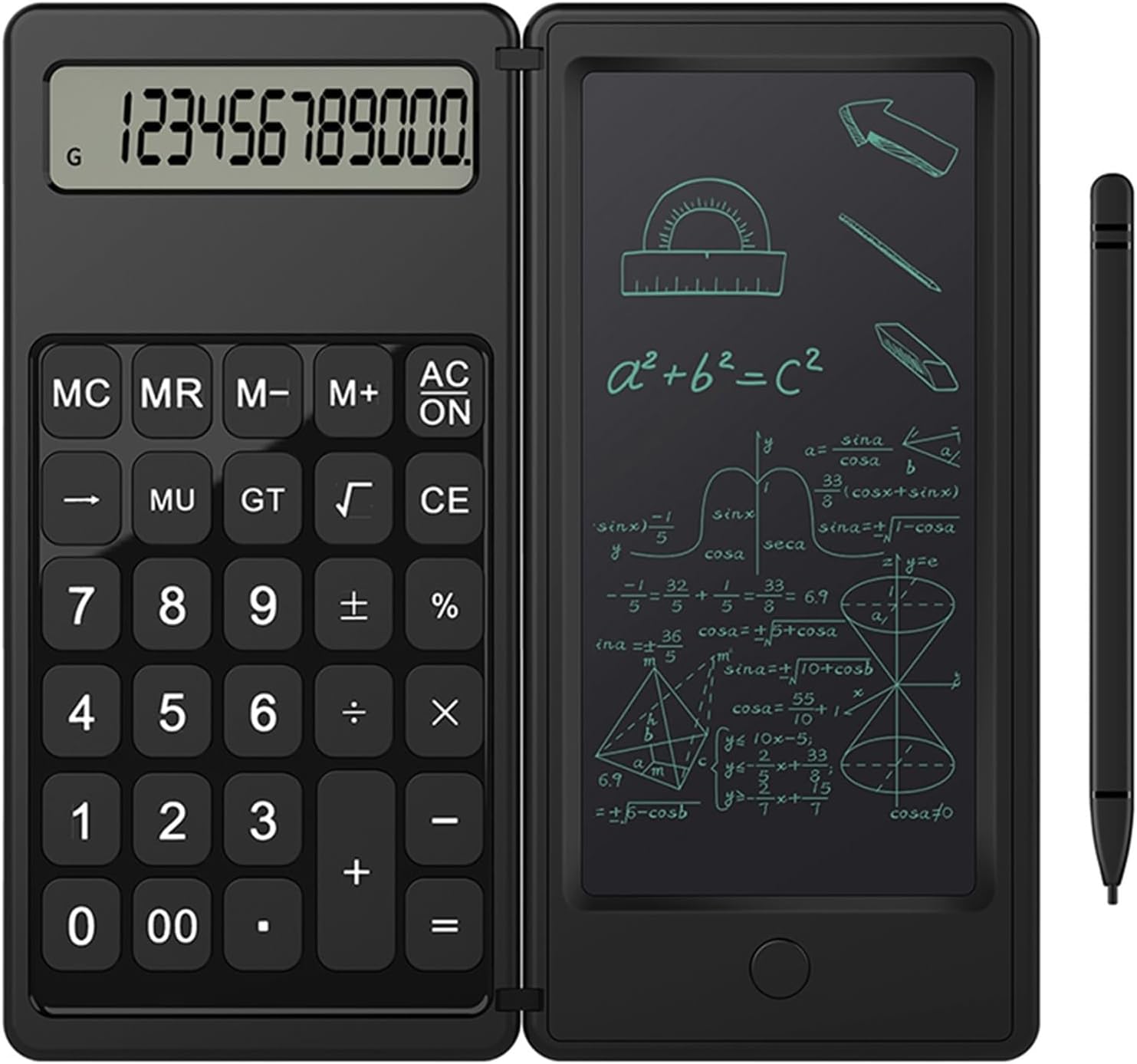 Cette mini calculatrice 2-en-1 est l’outil de bureau ou scolaire idéal ! D’un côté, une calculatrice complète avec affichage numérique ; de l’autre, un écran LCD de 5 pouces pour écrire ou dessiner à la main avec le stylet inclus. Parfait pour noter des calculs, des idées, ou pour les étudiants et professionnels en déplacement.