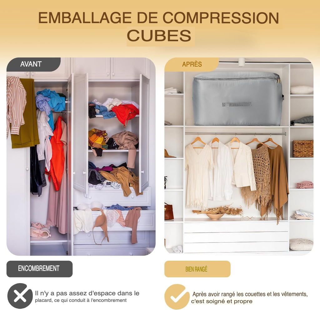 Économie d’Espace Maximale : Idéal pour stocker des articles volumineux comme les couettes, couvertures, oreillers, vêtements d’hiver et bien plus. Ces sacs vous aident à organiser votre espace de manière optimale et à réduire l'encombrement.