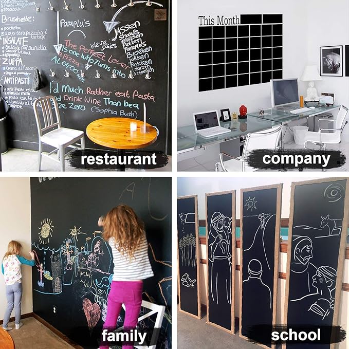 Transformez n’importe quelle surface en un tableau noir effaçable grâce à ce sticker en vinyle amovible. Idéal pour la maison, le bureau, la cuisine ou la chambre des enfants, il permet d’écrire à la craie et de nettoyer facilement avec un chiffon humide. Pratique, décoratif et simple à installer !